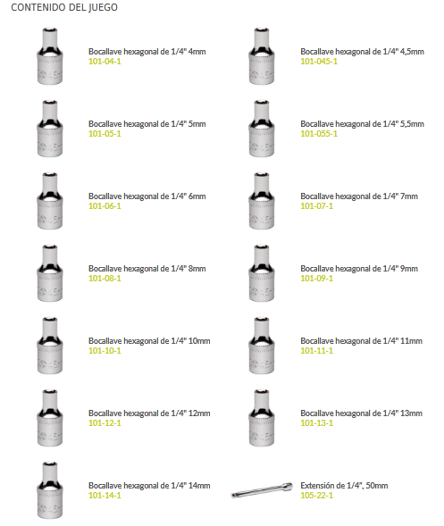 Juego de bocallaves hexagonales de 1/4", mm, 19 piezas