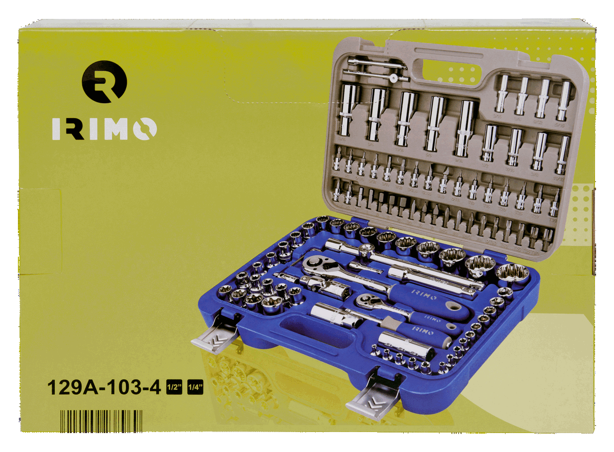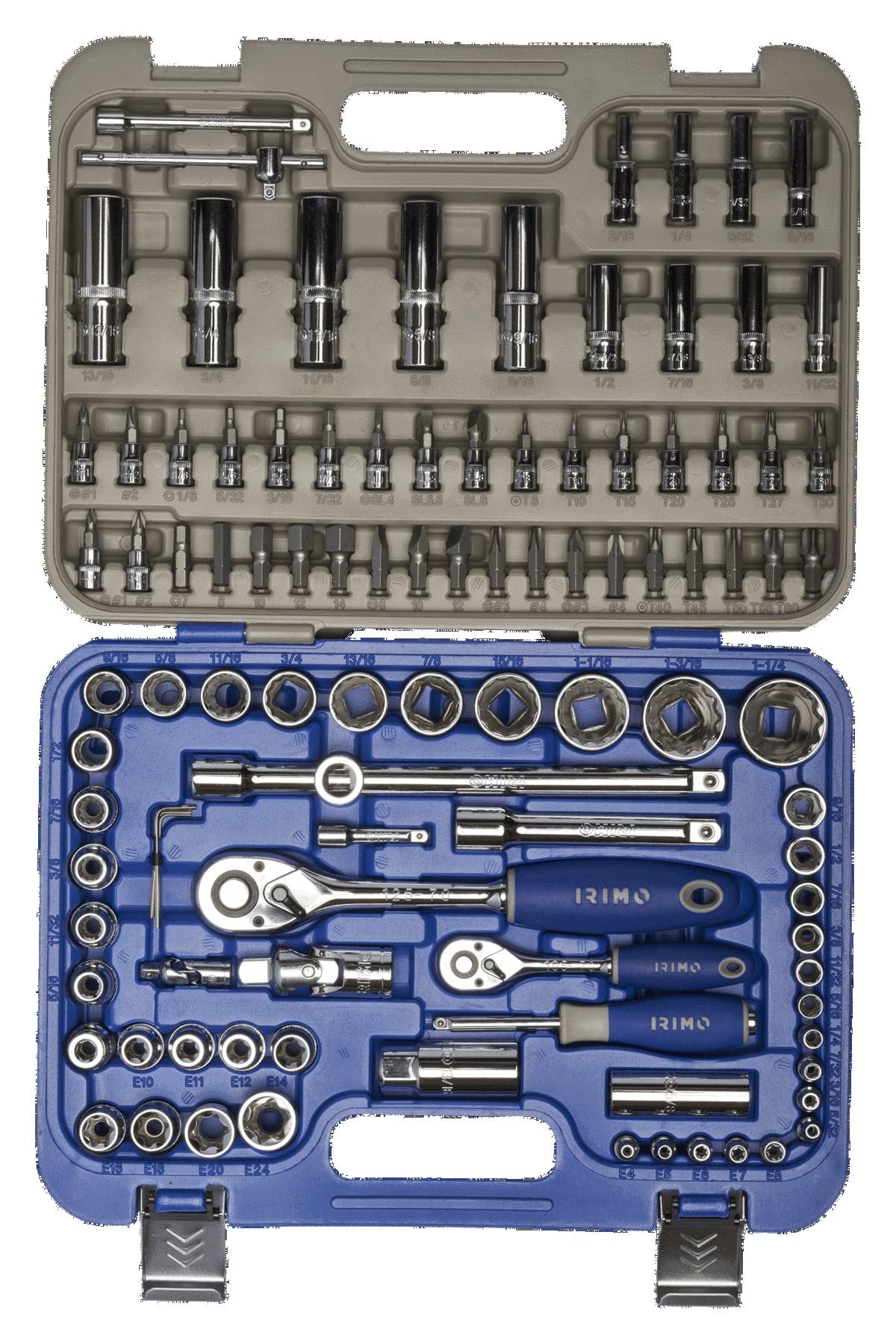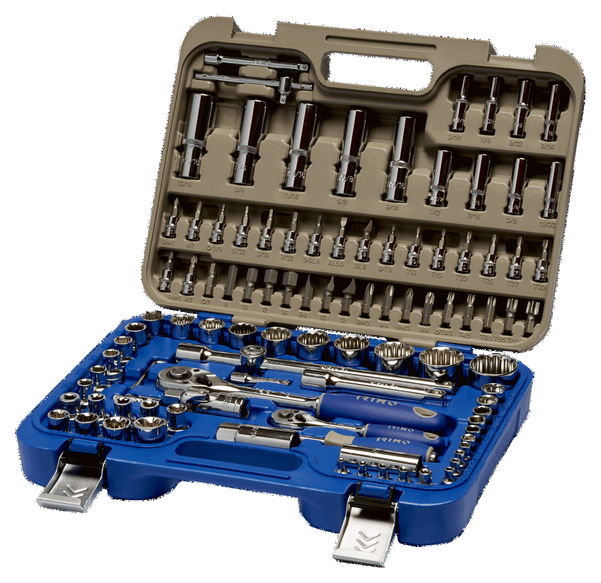 - Juego de 103 bocallaves con medidas en pulgadas.