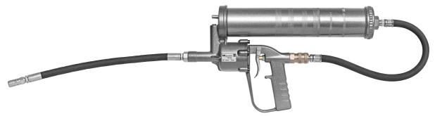 Pistola neumática de engrase con ratio de presión de entrega 60:1. Depósito de grasa 1.000 cc de capacidad con émbolo neumático para alimentación de grasa, ideal para grasas duras o con bajas temperaturas. Carga del depósito a granel o con dispensador. Motor neumático de bajo consumo de aire comprimido. Control de emboladas por pulsación del gatillo. Presión máxima de alimentación de aire: 10 bar. Rosca conexión H 1/4”G. Caudal: 1 cc por embolada. Depósito de 1.000 cc con salida flexible 140 040 y boquilla 121 020.