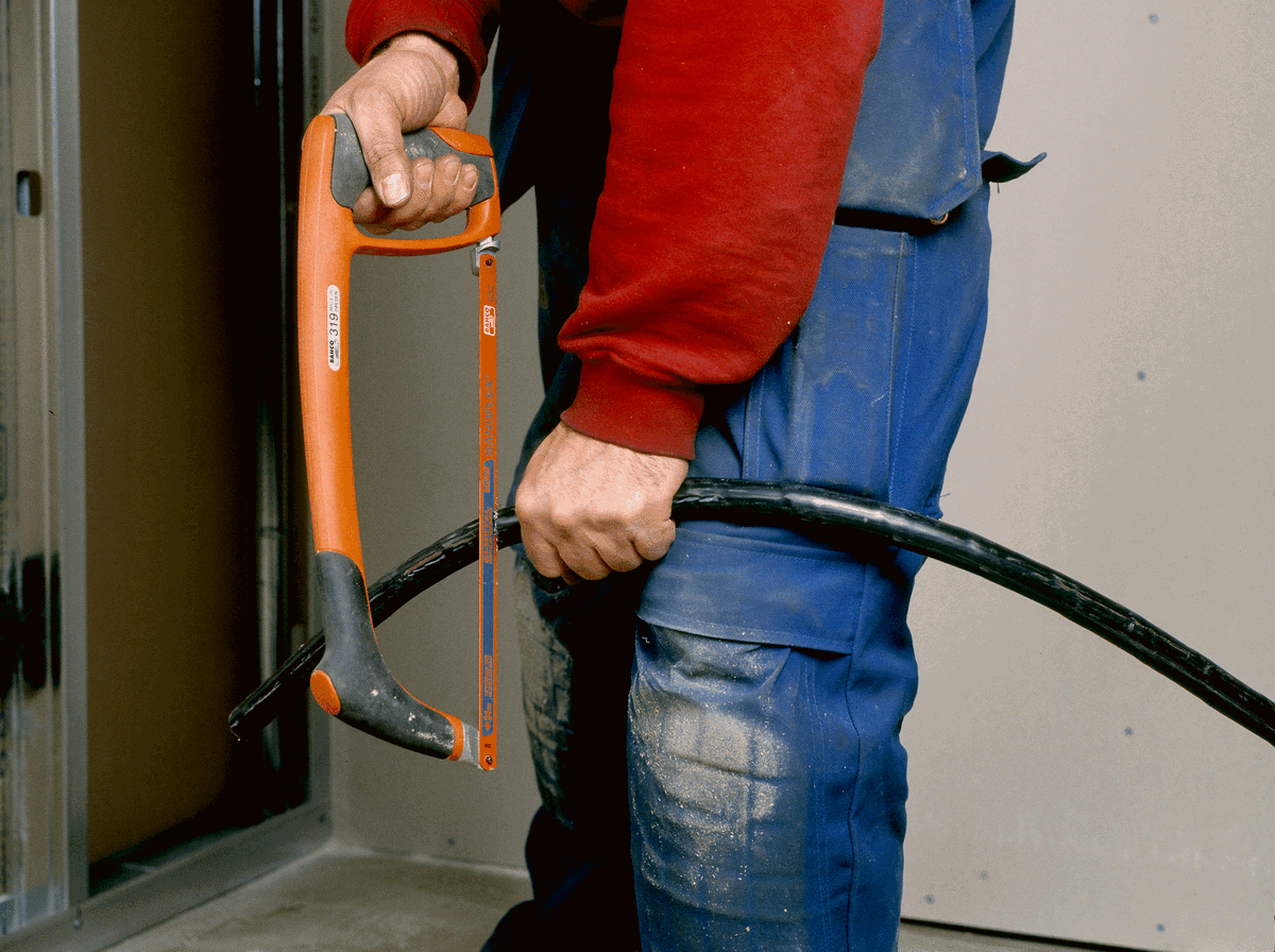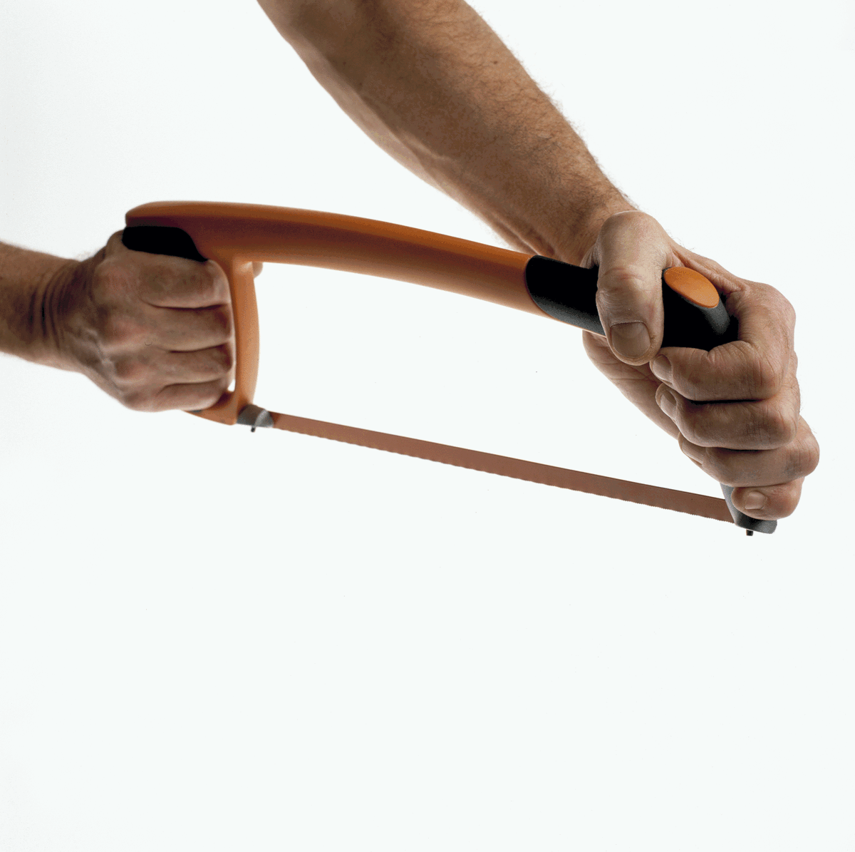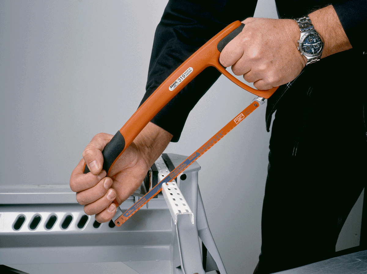 - Arco con centro de acero tubular recubierto en plástico, permitiendo una tensión elevada de la hoja para cortes rectos precisos.