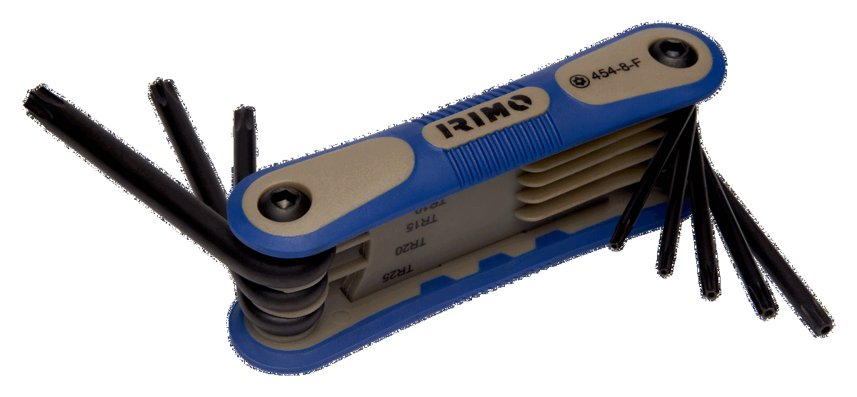 - Llaves tipo allen con punta TORX® inviolable en un estuche plegable con 8 piezas (con pin de seguridad).