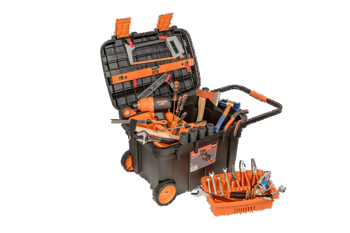- El asa resistente permite trasladar fácilmente la caja de herramientas.