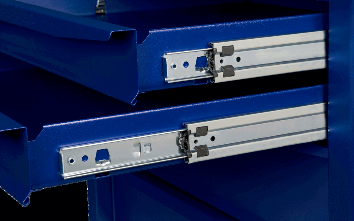 - Estructura de doble pared que protege los rieles y los cajones contra los golpes y las colisiones.