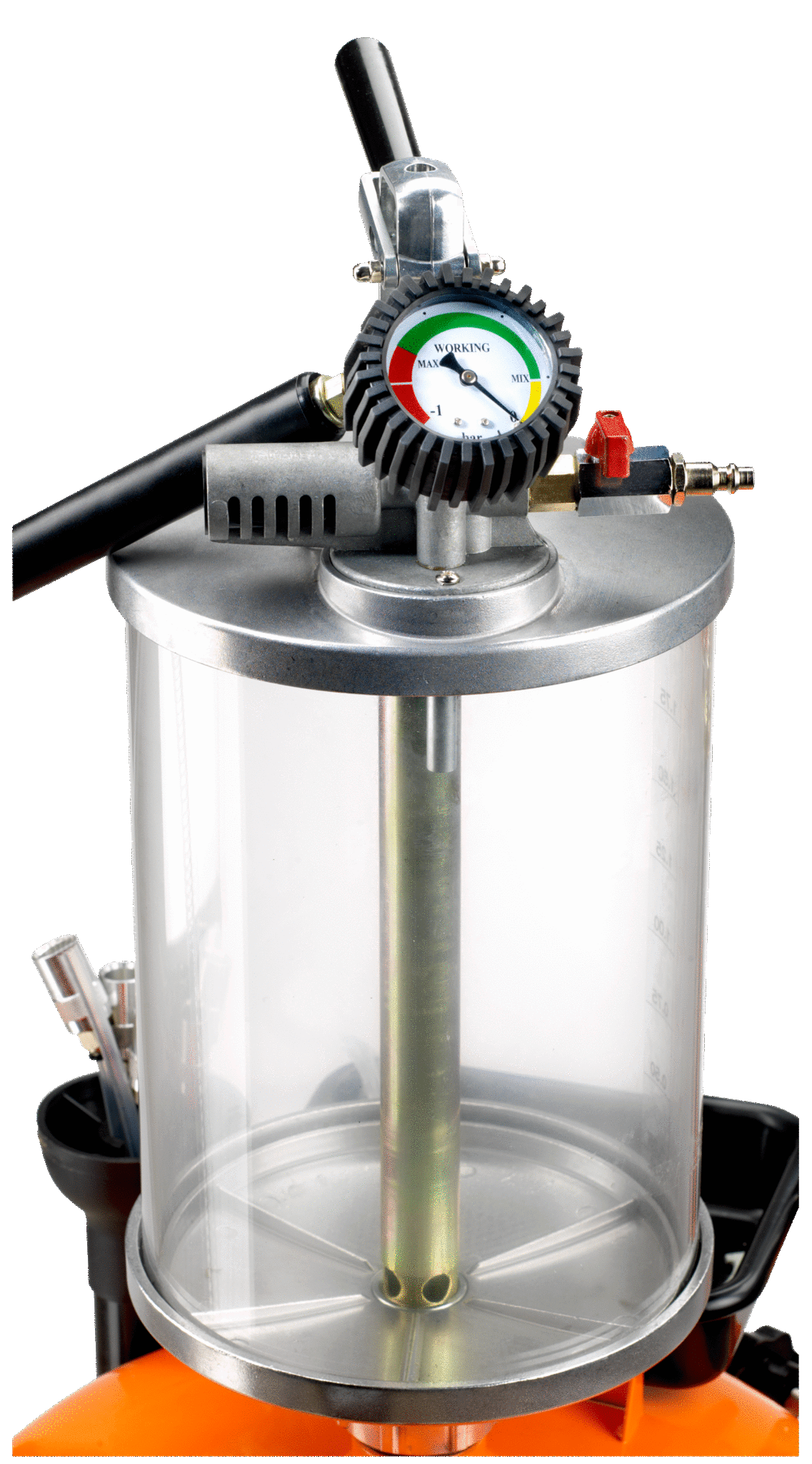 - Incluye una cámara de 9 l para una inspección visual inmediata de la calidad del aceite de desecho extraído