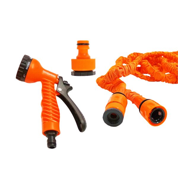 Lleva tu jardín al siguiente nivel con nuestra manguera extensible. Diseñada para hacer tu vida más fácil, se expande hasta 3 veces su longitud y se contrae automáticamente. Equipada con pistola de 7 patrones y un adaptador universal para cualquier grifo, es la solución perfecta para todas tus tareas al aire libre.