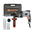 - Incluye: mango auxiliar, cincel de punta 10×150 mm, cincel plano 10×150 mm, 3 brocas 8/10/12×150 mm, juego de carbones de repuesto y guardapolvo.