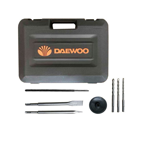 - Incluye: mango auxiliar, cincel de punta 10×150 mm, cincel plano 10×150 mm, 3 brocas 8/10/12×150 mm, juego de carbones de repuesto y guardapolvo.