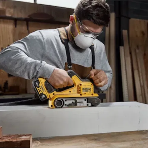 - Con motor sin escobillas, esta lijadora de banda inalámbrica puede lograr un tiempo de funcionamiento prolongado y eficiencia