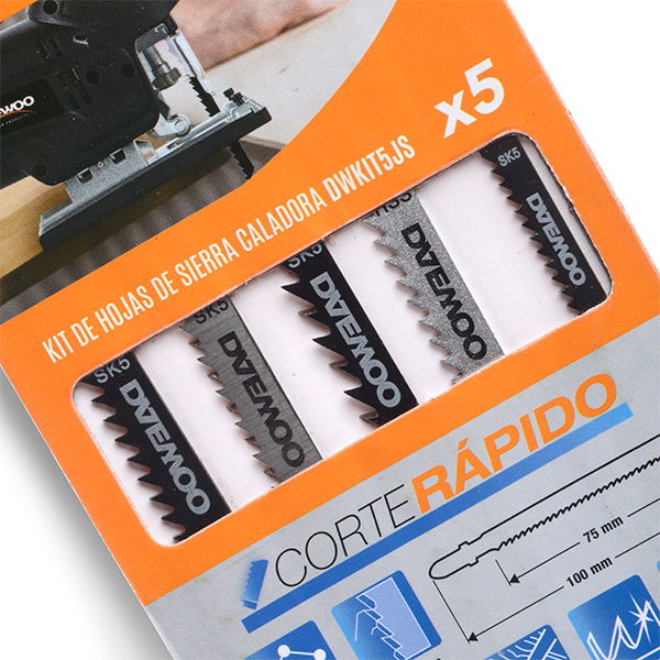 El kit de hojas para sierra caladora DWKIT5JS que ofrecemos es perfecto para una variedad de proyectos de carpintería. Incluye 5 tipos diferentes de hojas diseñadas para adaptarse a tus necesidades específicas, permitiéndote lograr cortes precisos y limpios en diferentes tipos de materiales. Aquí hay un resumen de las hojas incluidas y sus aplicaciones: