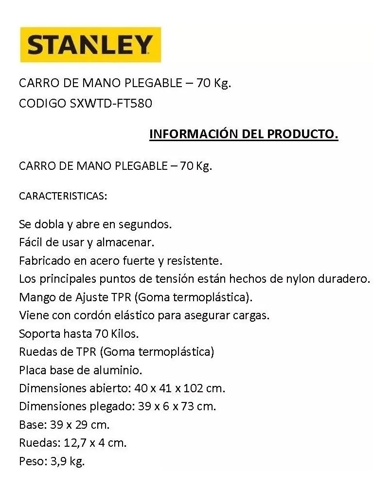 Carro portabulto plegable Stanley SXWTD-FT580 + Bolso
